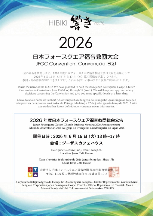 参加は、日本フォースクエア福音教団所属教会のメンバーのみです。